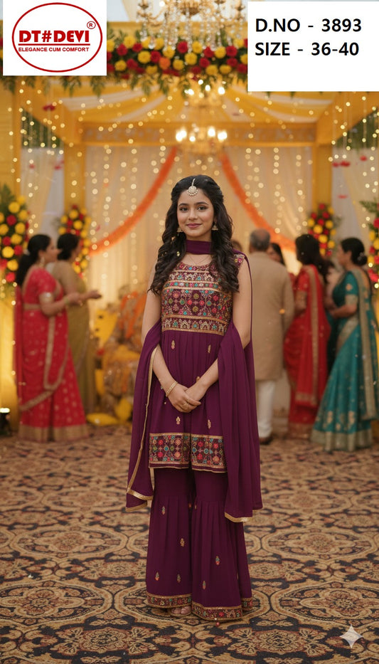 D No 3893 Dt Devi Georgette Girls Readymade Sharara Suits Wholesale Rate