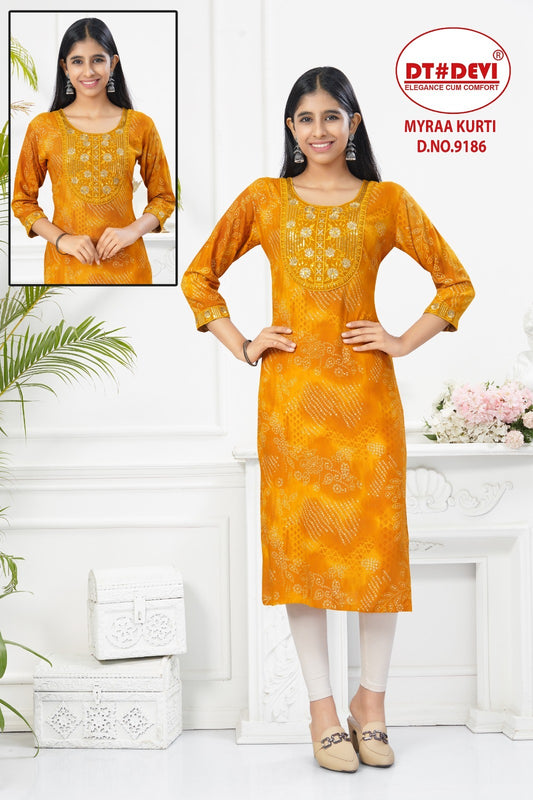 Myraa Dn 9186 Dt Devi Rayon Girls Kurti Supplier India