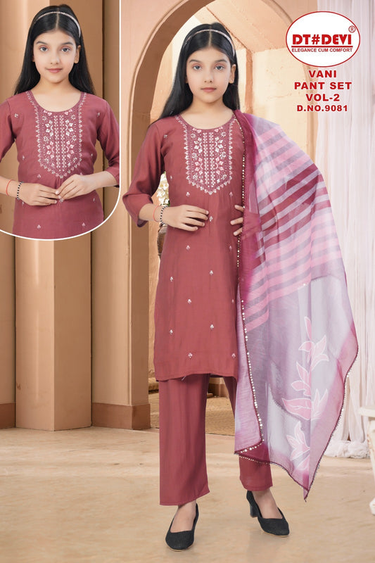Vani Vol 2 Dn 9081 Dt Devi Roman Silk Girls Readymade Pant Suits Manufacturer