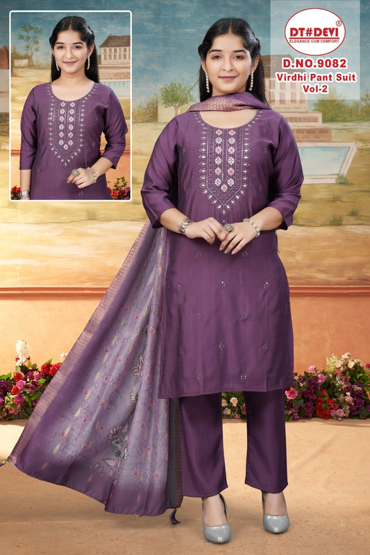 Virdhi Vol 2 Dn 9082 Dt Devi Roman Silk Girls Readymade Pant Suits Supplier Gujarat