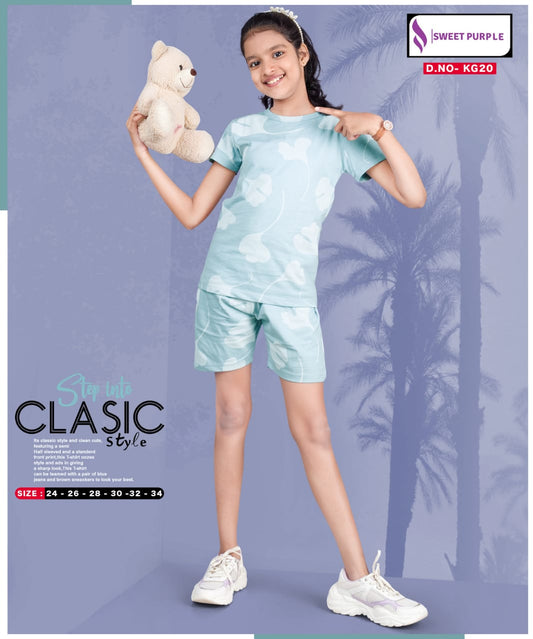 Kg64 Sweet Purple Hosiery Girls Capri Night Suits Manufacturer Gujarat
