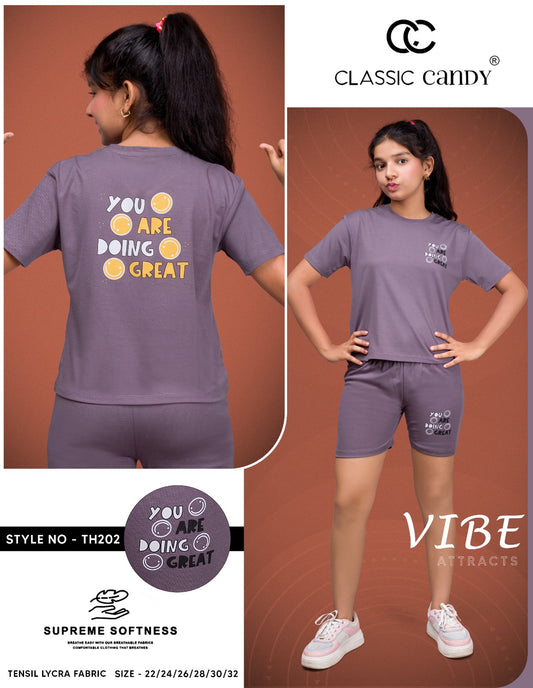 Th 204 Classic Candy Tencil Lycra Girls Capri Night Suits Wholesaler