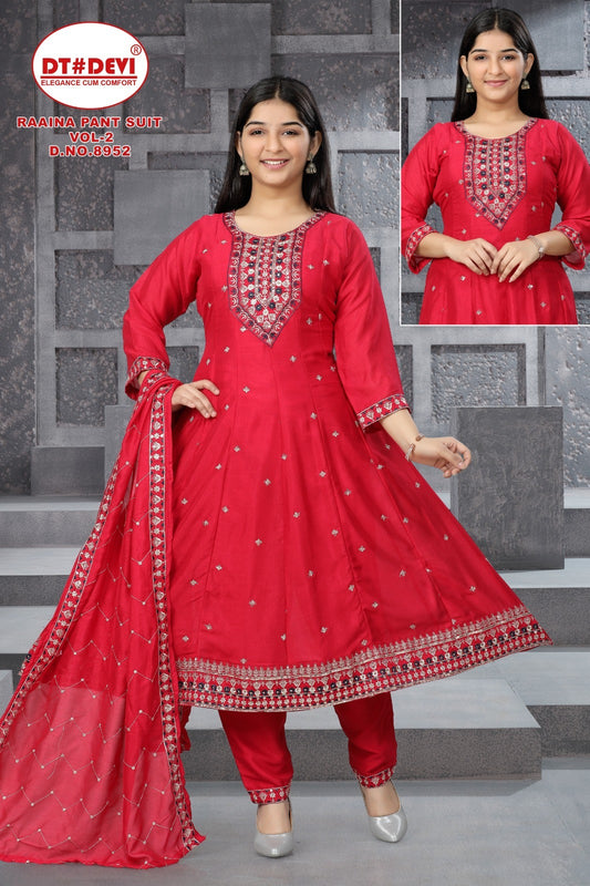 Raaina Vol 2 Dn 8952 Dt Devi Vichitra Silk Girls Readymade Pant Suits Exporter Gujarat