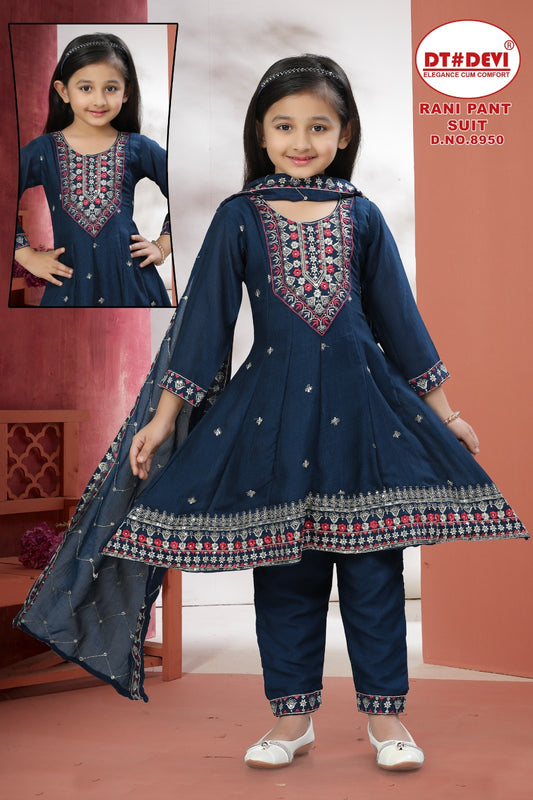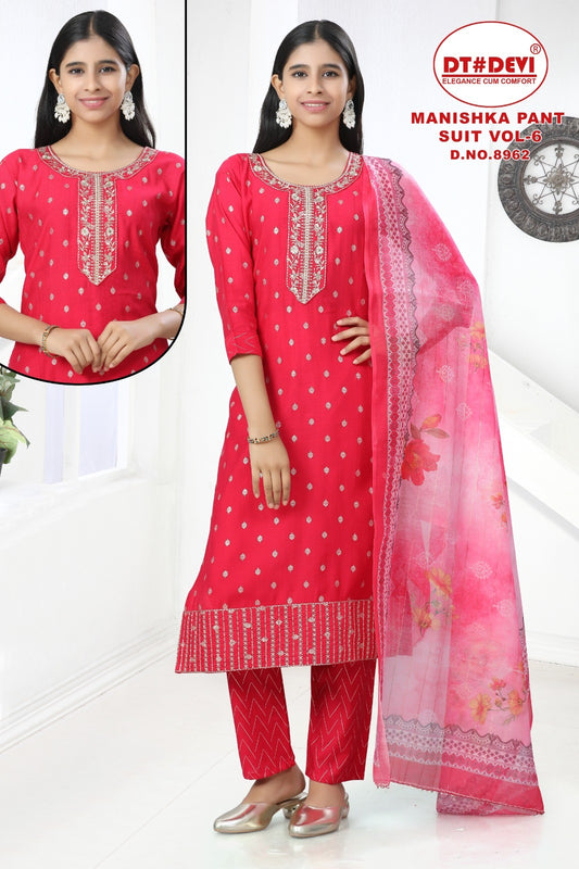 Rani Dn 8950 Dt Devi Vichitra Silk Girls Readymade Pant Suits Wholesale