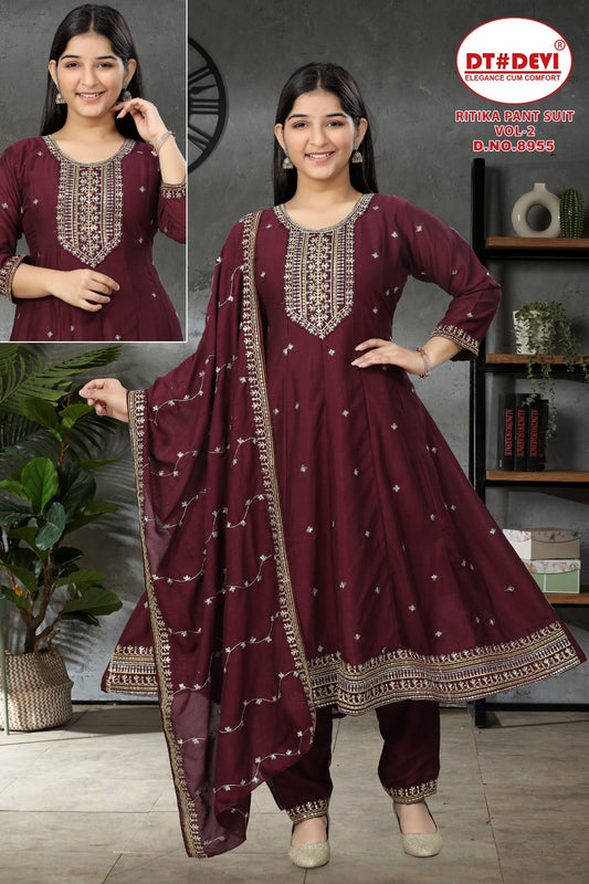 Ritika Vol 2 8955 Dt Devi Vichitra Silk Girls Readymade Pant Suits Wholesaler India