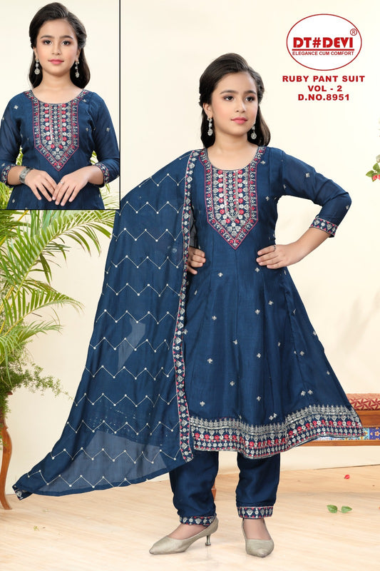 Ruby Vol 2 Dn 8951 Dt Devi Vichitra Silk Girls Readymade Pant Suits Wholesaler Gujarat