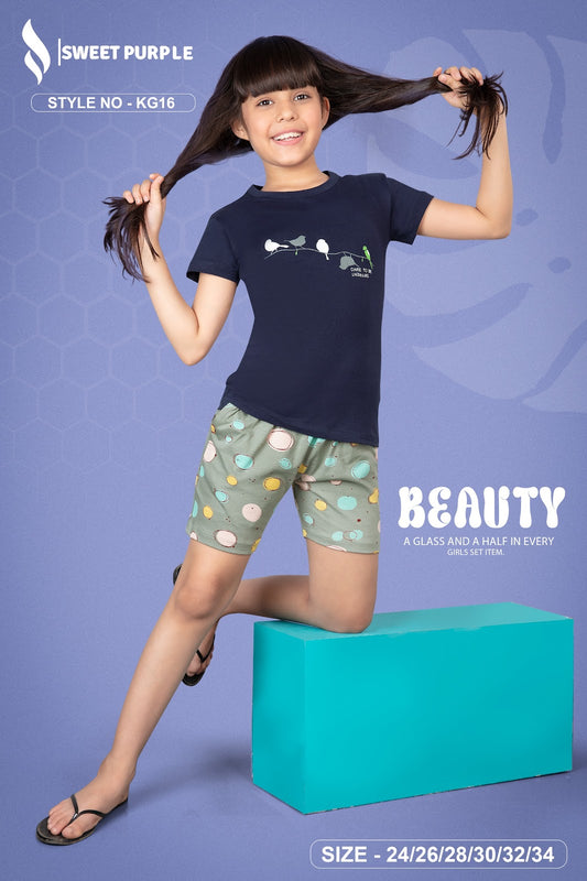 Kg16 Sweet Purple Biowash Girls Shorts Set Supplier Ahmedabad