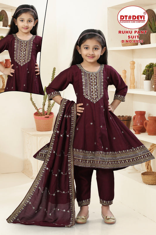 Ruhu 8953 Dt Devi Vichitra Silk Girls Readymade Pant Suits Supplier India
