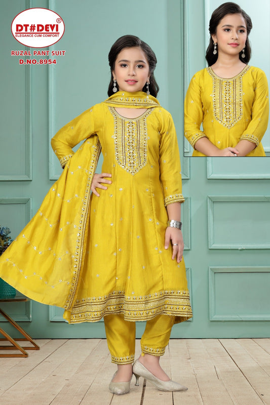 Ruzal 8954 Dt Devi Vichitra Silk Girls Readymade Pant Suits Exporter India
