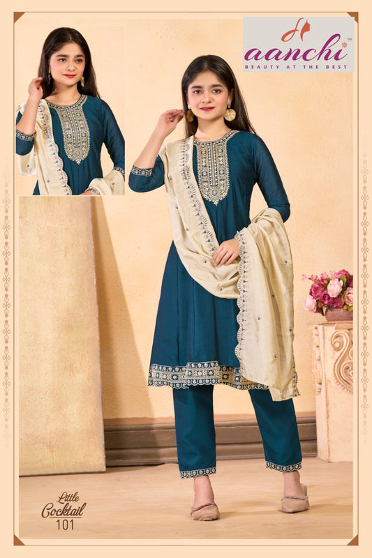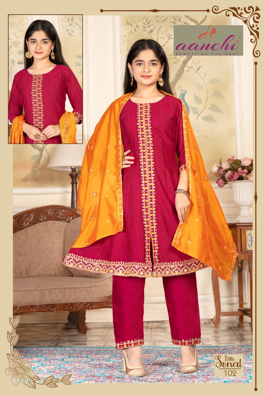 Little Sonal Anarkali Aanchi Vichitra Silk Girls Readymade Pant Suits Manufacturer Gujarat