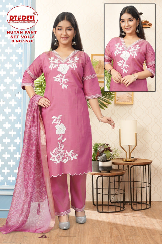 Nutan Vol 2 9576 Dt Devi Roman Simmer Girls Readymade Pant Suits Manufacturer Gujarat