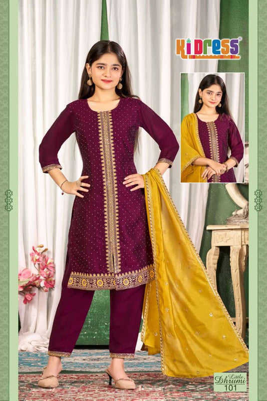 Little Dhrumi Kidress Aanchi Vichitra Silk Girls Readymade Pant Suits Wholesale Rate