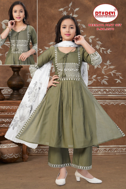 Neemaya Dn 9570 Dt Devi Roman Silk Girls Readymade Pant Suits Wholesale Price