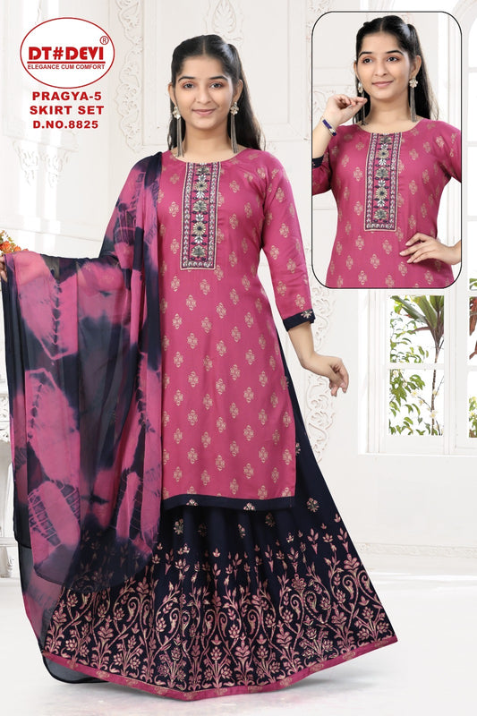 Pragya Vol 5 8825 Dt Devi Rayon Girls Readymade Skirt Style Suits Wholesale Price