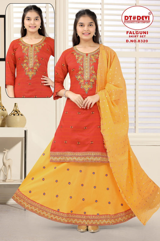 Falguni-8320 Dt Devi Silk Girls Readymade Skirt Style Suits