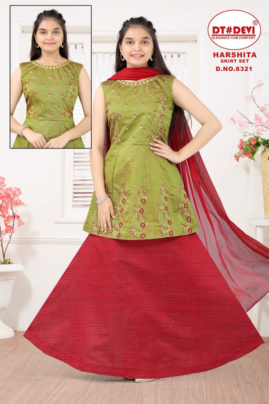 Harshita -8321 Dt Devi Silk Girls Readymade Skirt Style Suits
