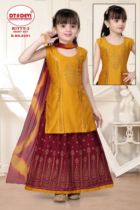 Kitty-3 8291 Dt Devi Silk Girls Readymade Skirt Style Suits