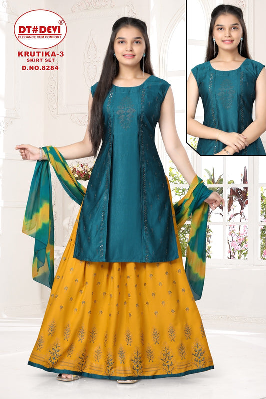 Krutika-3 8284 Dt Devi Silk Girls Readymade Skirt Style Suits