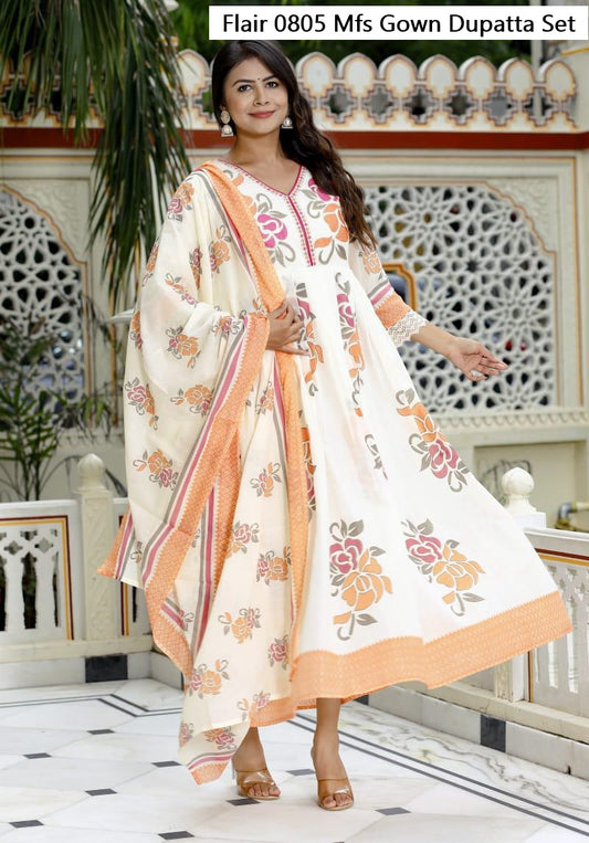 Flair 0805 Mfs Cotton Gown Dupatta Set Wholesale Rate