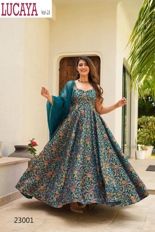 Vol 23 23001-23005 Lucaya Silk Gown Dupatta Set Supplier India