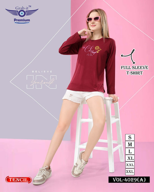 Vol 4029 A Full Sleeves Grab It Tencil Women Tshirt Wholesaler