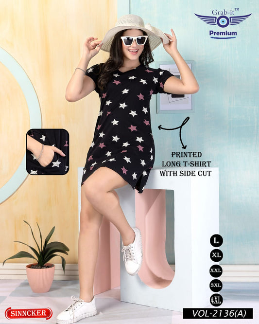 Printed 2136 A Side Cut Grab It Sinker Women Long Tshirt Wholesaler Ahmedabad