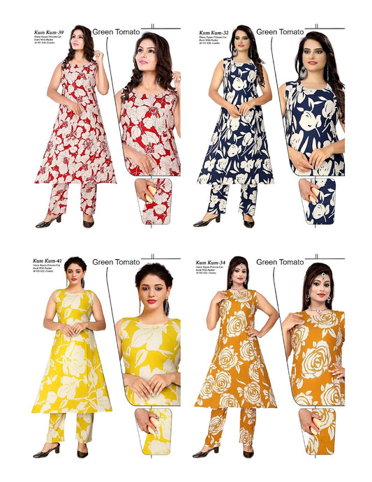Kumkum Green Tomato Rayon Co Ord Set Exporter