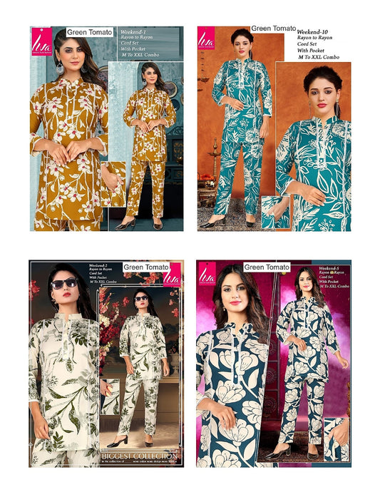 Design 421-425 Green Tomato Vatican Co Ord Set Manufacturer India