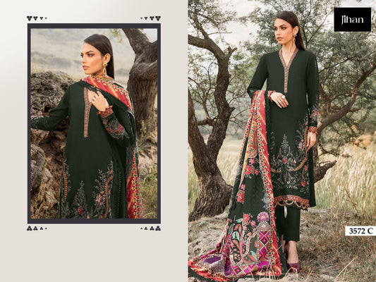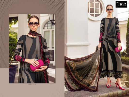 Design 3425-3427 Jihan Pure Cotton Karachi Salwar Suits Exporter Ahmedabad