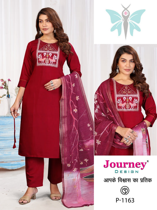 P 1162-1163 Journey Design Silk Readymade Pant Style Suits Manufacturer Ahmedabad