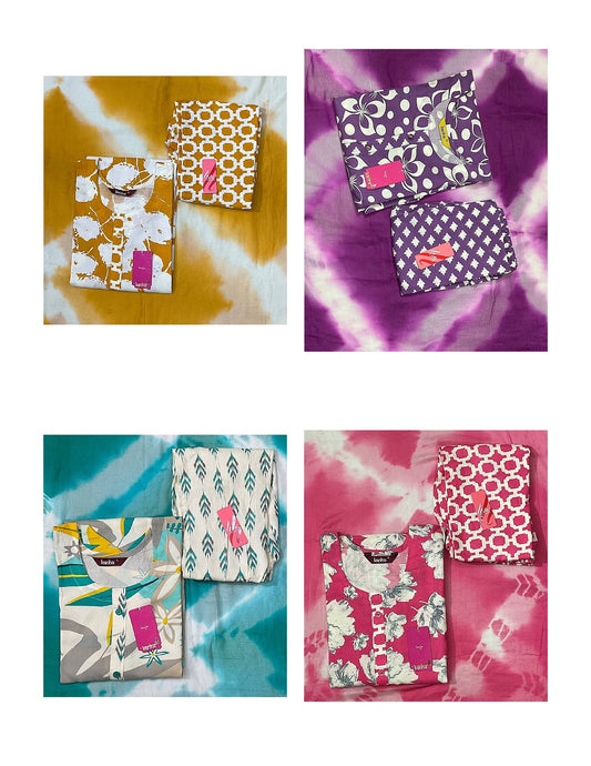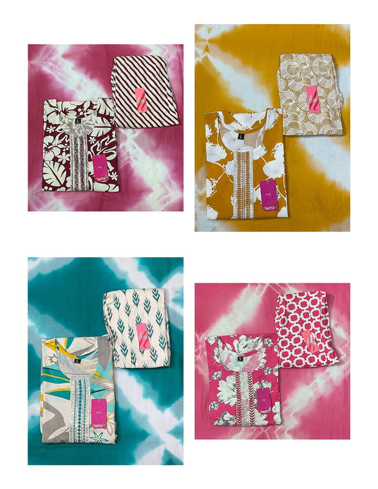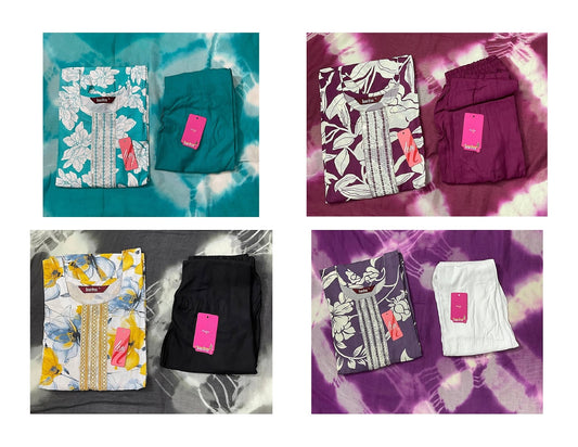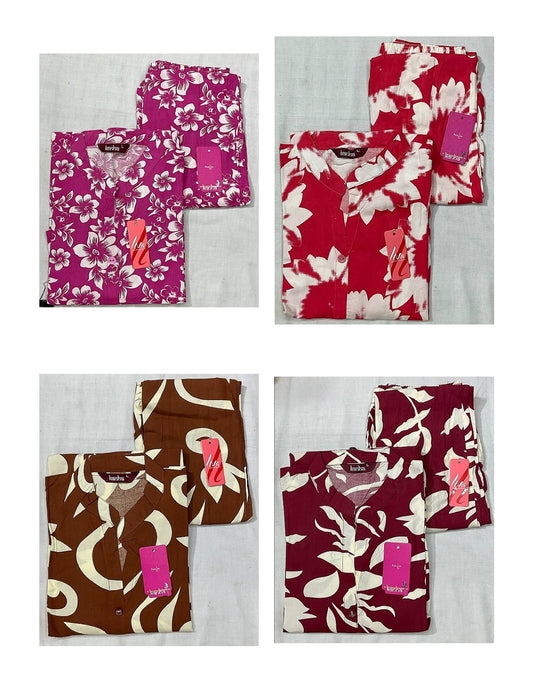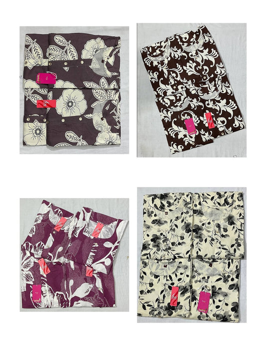 - We Sale Cotton Dress Material, Salwar Suits, Co Ord Sets, Karachi Suits, Semi Stitched Suits, Sarees With Blouses, Box Packing Sarees, Night Wear Kavyansika Brand, Night Gown, Night Suits, Bottom Wear, Pants , Plazzo, Leggings, Men'S Tshirt, One Piece Gown, Kurtis.