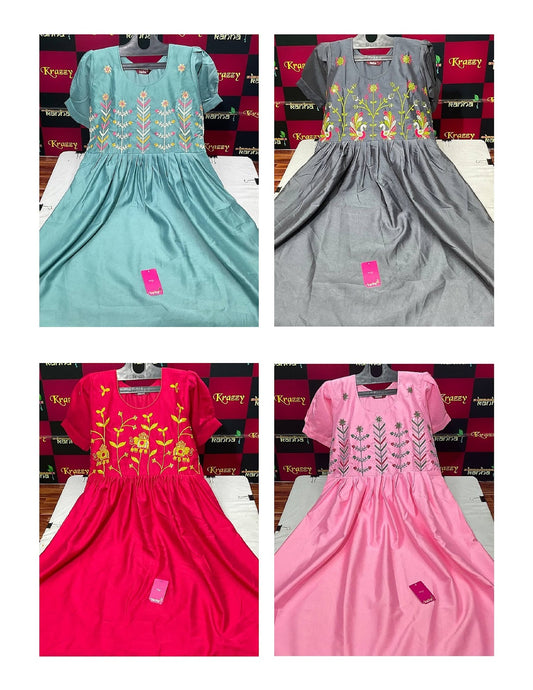 - Fabric We Use In Manufacturing : Cotton, Georgette, Rayon, Imported, Net, Silk, Satin And Many More.