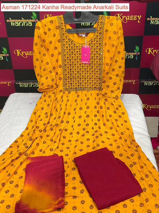 Asman 211124 Kanha Reyon Readymade Anarkali Suits Wholesale Rate