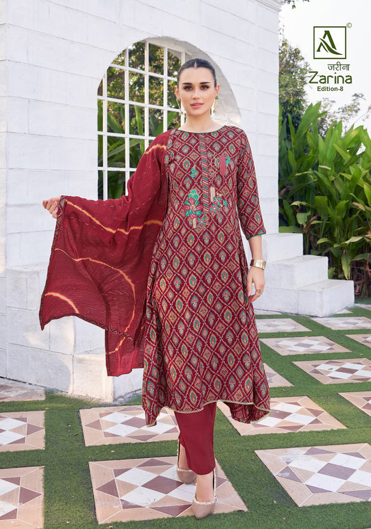 Zarina Edition 8 Alok Viscose Rayon Karachi Salwar Suits Wholesale