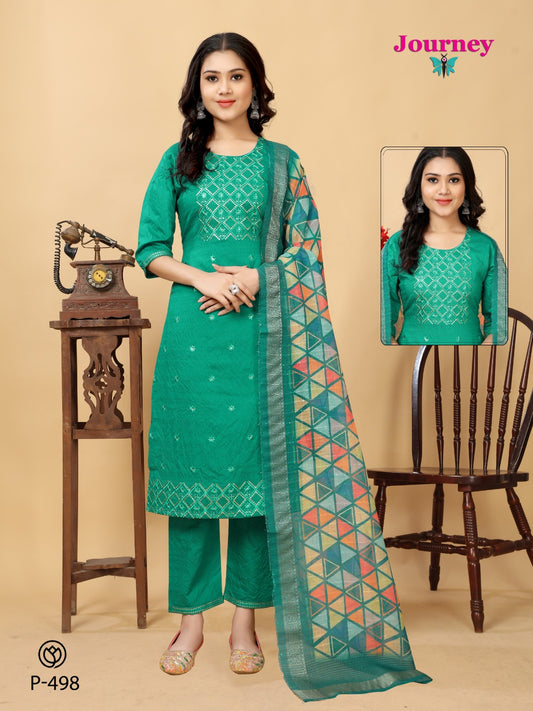 P 498-499 Journey Design Chanderi Readymade Pant Style Suits