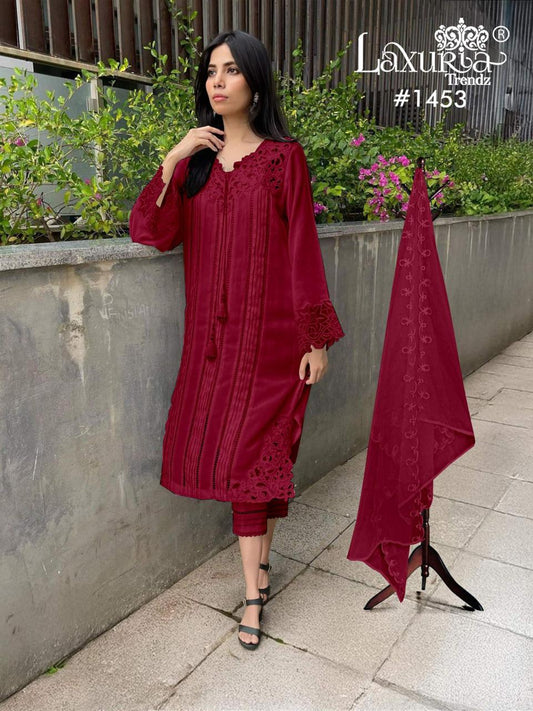 1453 Laxuria Trendz Slub Pakistani Readymade Suits Wholesaler Ahmedabad