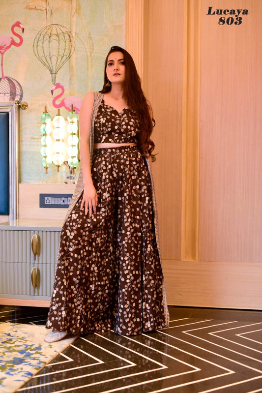 Vol 8 Lucaya Muslin Crop Top Shurg Palazzo Set