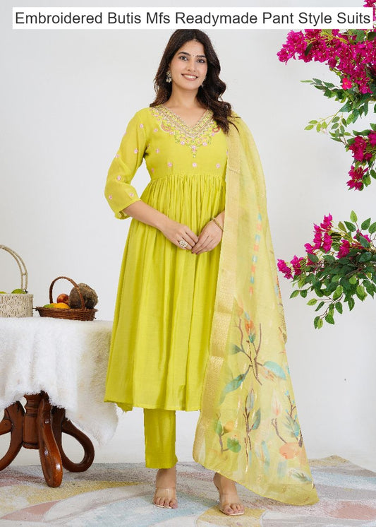 Embroidered Butis Mfs Chanderi Readymade Pant Style Suits Wholesaler India