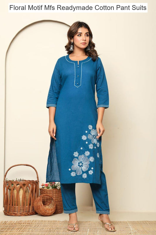 Floral Motif Mfs Mul Readymade Cotton Pant Suits Manufacturer