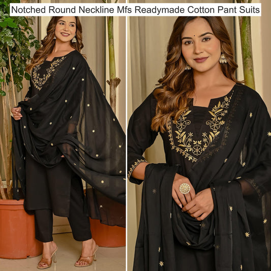 Notched Round Neckline Mfs Readymade Cotton Pant Suits Wholesale Price