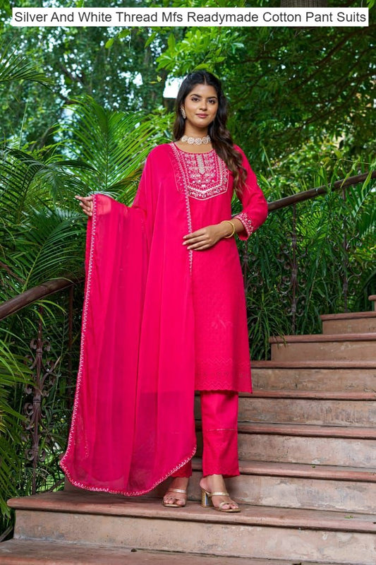 Silver And White Thread Mfs Readymade Cotton Pant Suits Manufacturer Gujarat