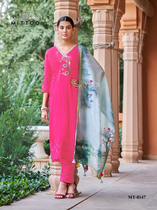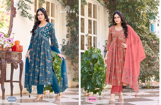 Mt 8132-8138-8141 Mittoo Viscose Readymade Pant Style Suits Exporter Ahmedabad