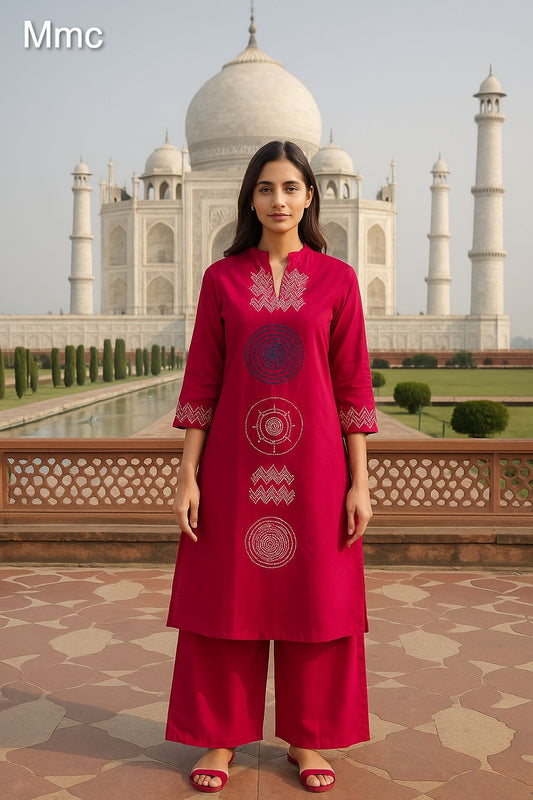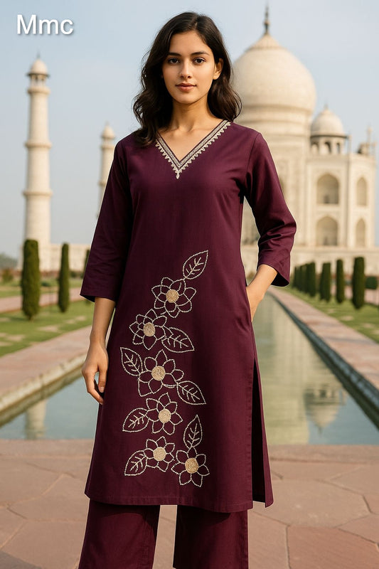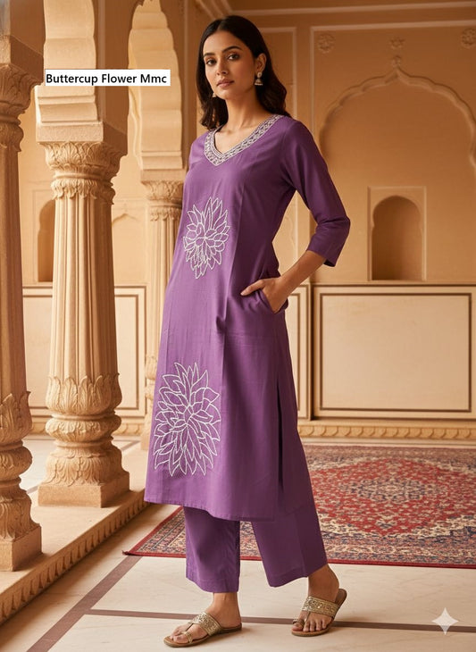 Violet Flower Mmc Cotton Kurti Plazzo Set Exporter Gujarat