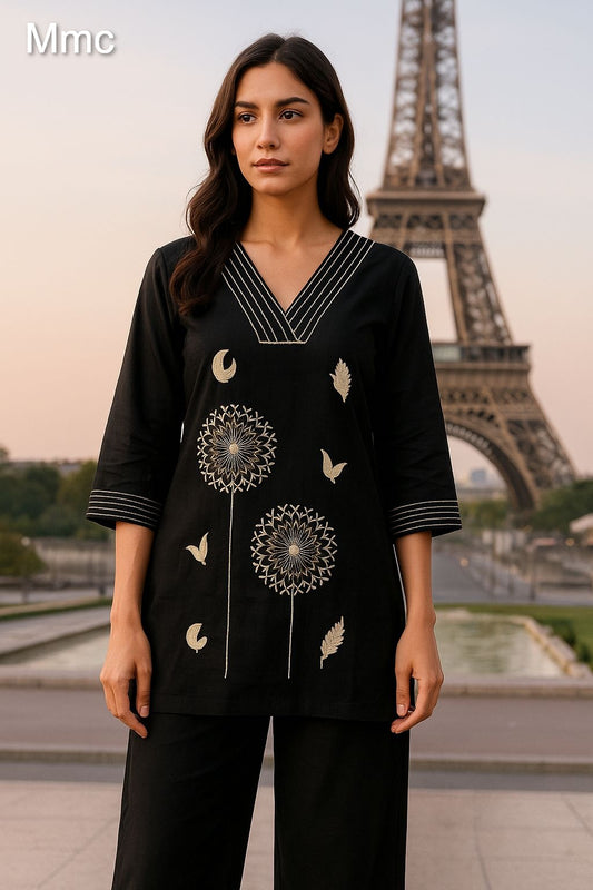 Black Rose Flower Mmc Cotton Co Ord Set Exporter