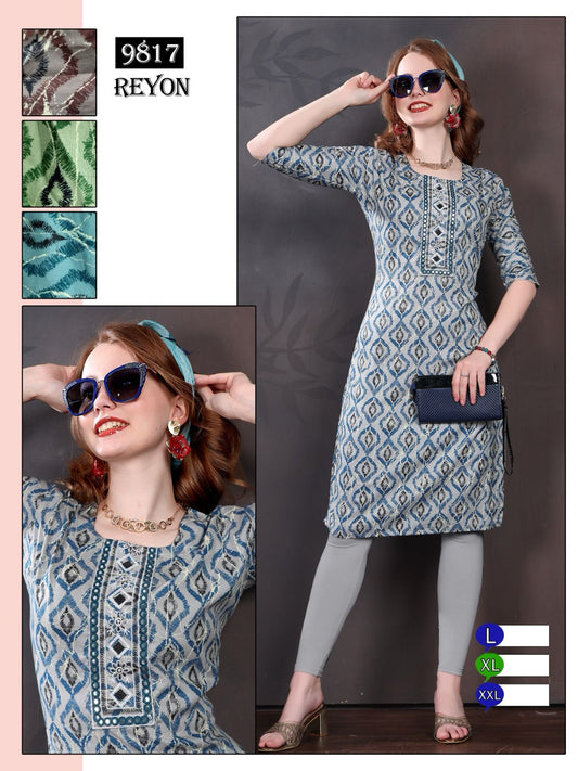 973723 Mmc Rayon Knee Length Kurtis