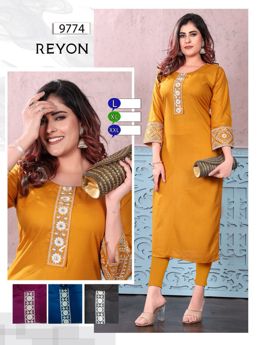 Glass Work 0512 Mmc Rayon Long Kurtis