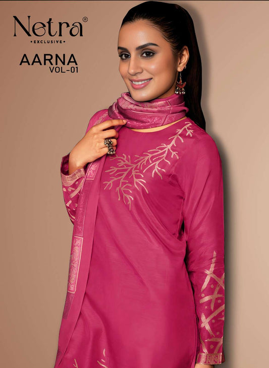 New Aarna Vol 1 Netra Muslin Jacquard Pant Style Suits Wholesaler Gujarat