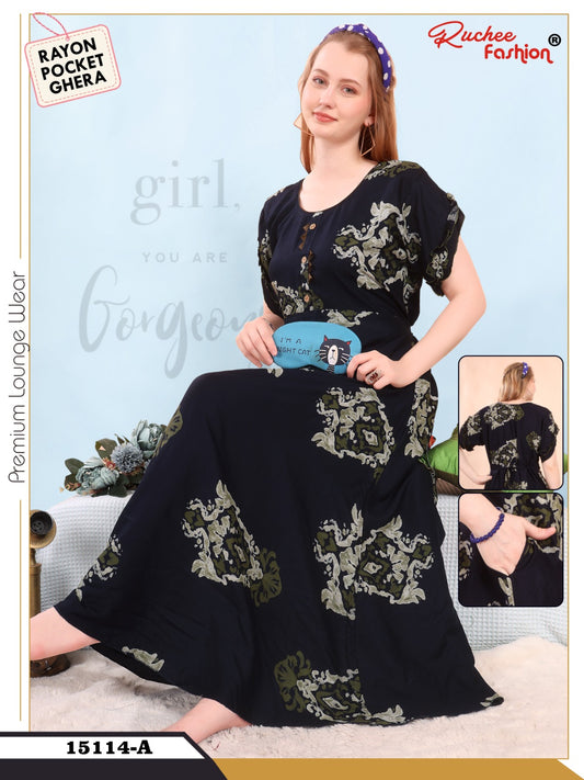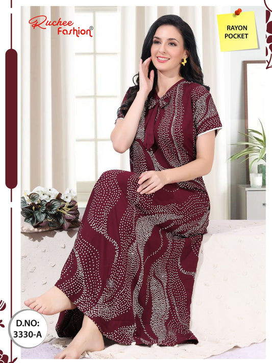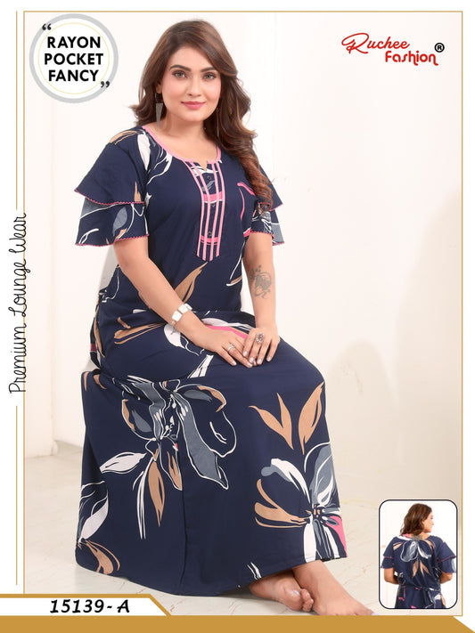 Rayon Pokcet 1206 Ruchee Fashion Rayon Night Gowns Exporter Ahmedabad