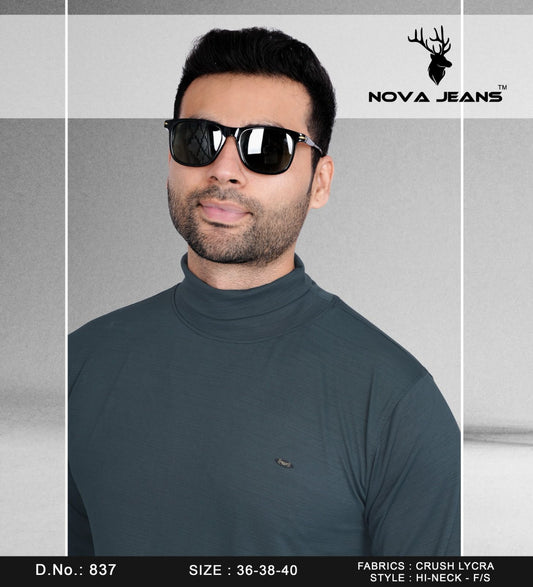 Full Sleeves Design No 837 High Neck Nova Jeans Lycra Mens Tshirts Supplier India
