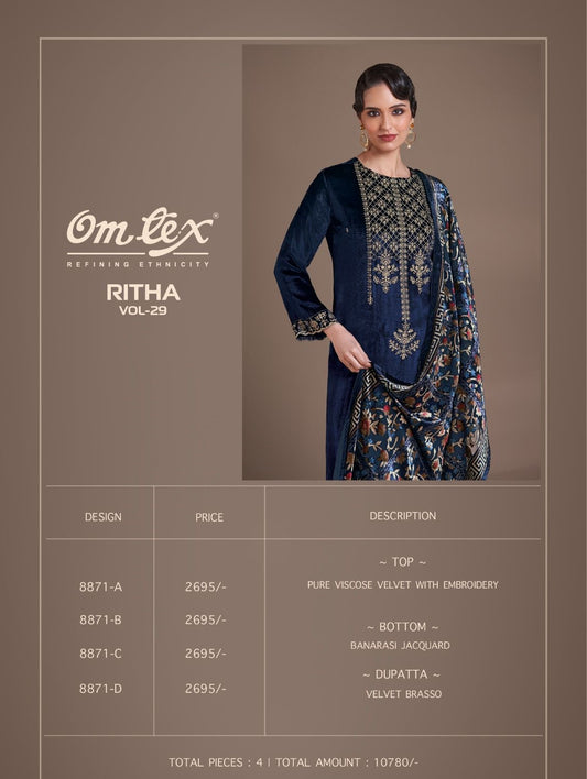 Ritha Vol 29 Omtex Velvet Suits Wholesale Price